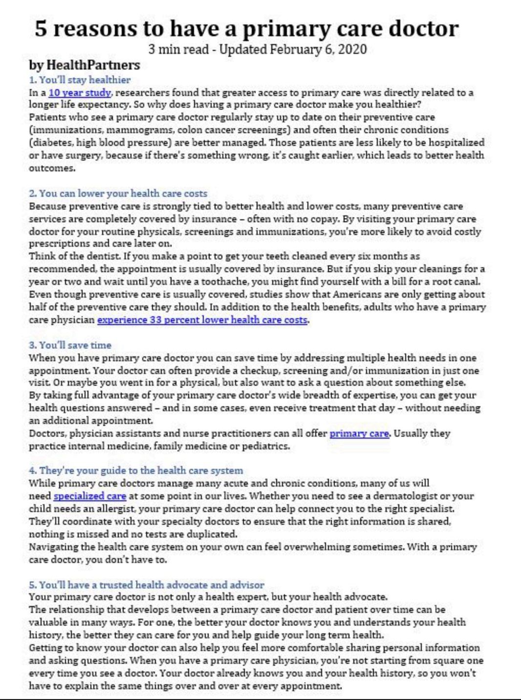 PRIMARY CARE